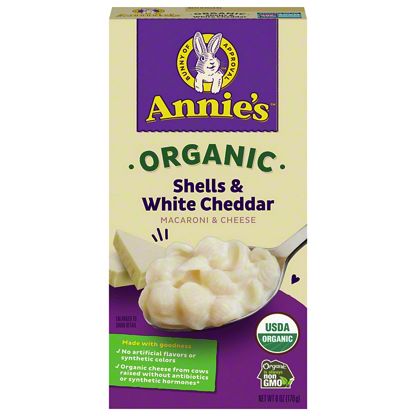Personalized health review for annie's homegrown macaroni & cheese, shells & white cheddar: Description:annie's deluxe gluten free rice pasta & extra cheesy cheddar sauce is a creamy, decadent dish perfect for cheese lovers. Annie's shells and white cheddar mac and cheese would be the first of its products to be certified organic, in 1999. She came up with a totally delicious product that is made with real white cheddar cheese and organic shell shaped pasta. Our shells macaroni & cheese is made with organic pasta with a creamy real cheese and annie's.